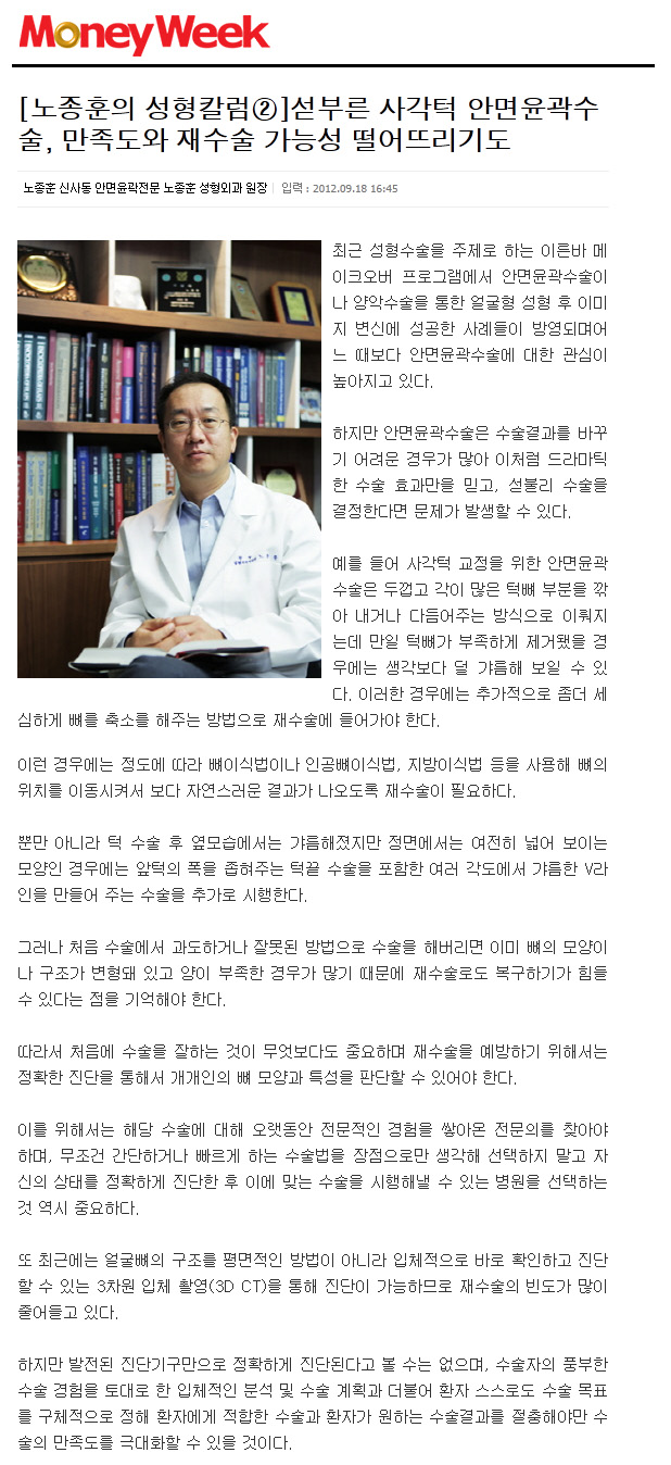 [³ëÁ¾ÈÆÀÇ ¼ºÇüÄ®·³¨è]¼²ºÎ¸¥ »ç°¢ÅÎ ¾È¸éÀ±°û¼ö¼ú, ¸¸Á·µµ¿Í Àç¼ö¼ú °¡´É¼º ¶³¾î¶ß¸®±âµµ